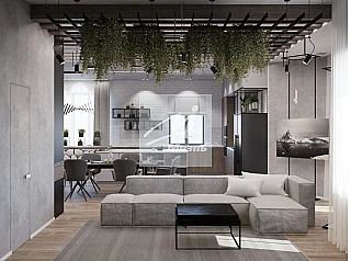О доме. Монолитный. На первом этаже расположены: большая гостиная 45 кв.м., кухня 16 кв.м., санузел с душем, умывальником и унитазом, бойлерная. На кухне, в санузле, прихожей полы - плитка, с подогревом, в гостиной - ламинат. Потолки оштукатурены и покрашены , высота 2.85м.