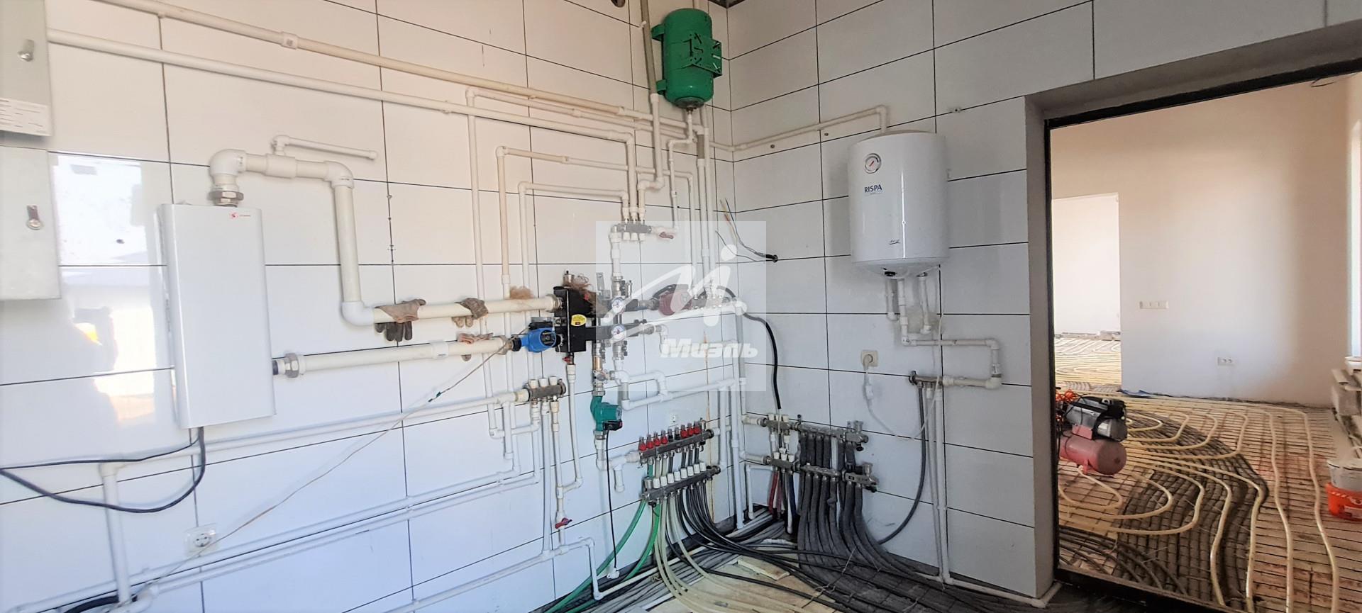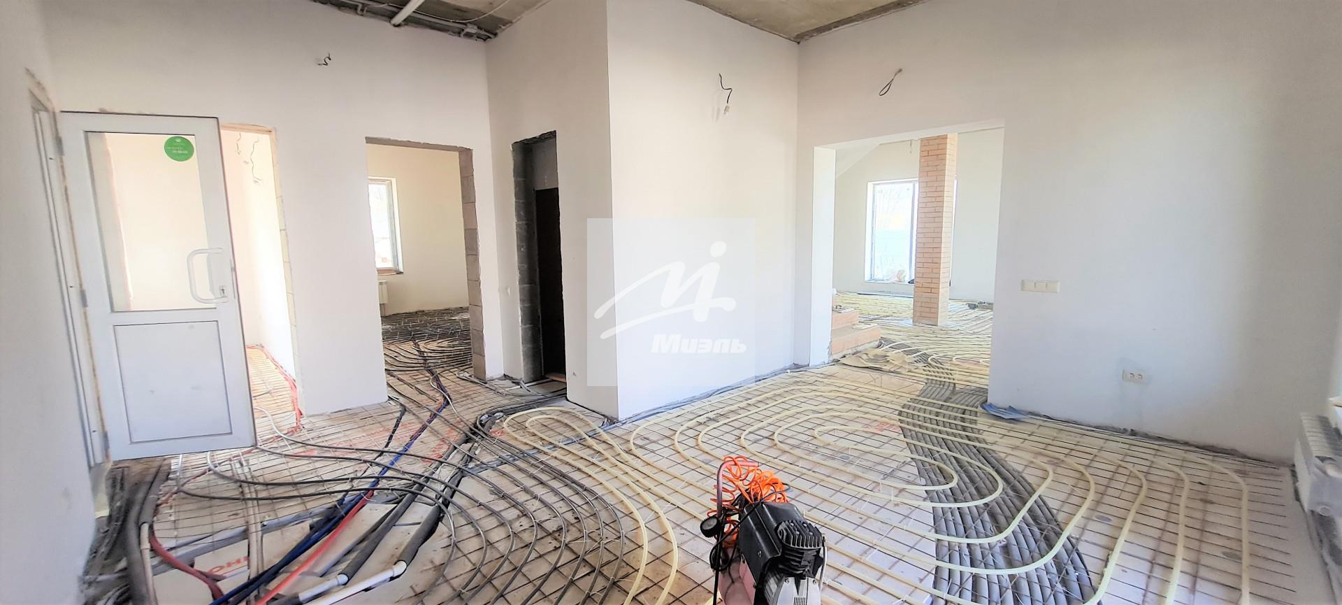 На весь первый этаж установлен теплый пол, в ближайшие дни будет уложена импортная плитка и отделаны потолки. На втором этаже уже сделан пол (керамогранит) и потолок, в сан. узлах так же установлен теплый пол. Все стены специально оставлены под финишное покрытие, что позволит внести свой внутренний дизайн в дом свой мечты.