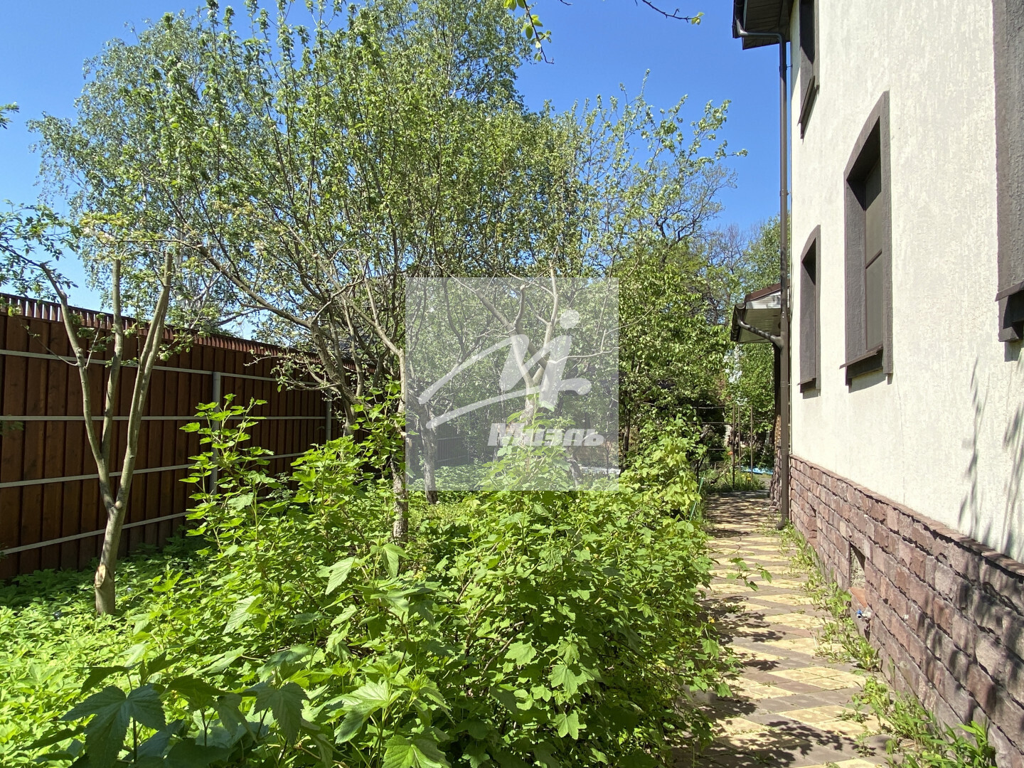 С фасадной стороны участка взрослые туи, за домом яблони, черешня, сливы, груша, смородина, крыжовник. Участок ровный, высокий, сухой. По всему участку сделан дренаж.