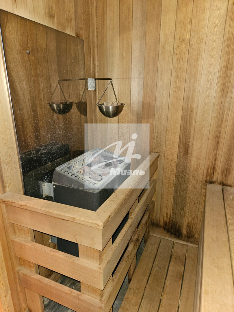 На первом этаже в зоне второго света расположена уютная гостиная с камином ручной работы, кухня, большая солнечная столовая, две комнаты для гостей, санузел, сауна из канадского кедра, бойлерная, щитовая, гараж.