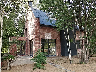 Дом состоит из двух этажей, на первом расположена очень просторная и светлая кухня-гостиная с санузлом под лестницей, из гостинной вы попадаете в большой солнечный зимний сад со стеклянной панорамной крышей и с выходом на участок. Также на первом этаже оборудована отдельным блоком от гостинной спальня со своим санузлом и холлом.