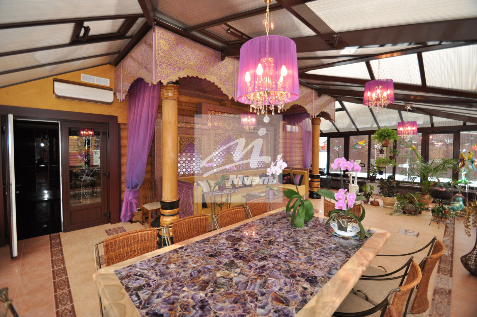 Дорогая качественная отделка и натуральные отделочные материалы, мрамор, паркет, дорогая сантехника.Стильная итальянская мебель, встроенная бытовая техника от ведущих мировых производителей порадуют любителей наслаждаться красотой и комфортом.
