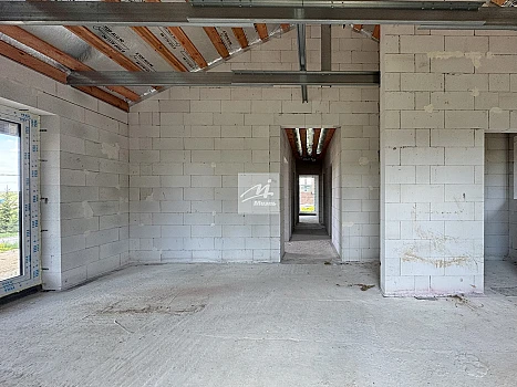 Дом построен на основательном фундаменте (фундаментные блоки), перекрытия первого этажа - полнотелые ж/б плиты, стены - брус 15х15 см, облицован кирпичом.