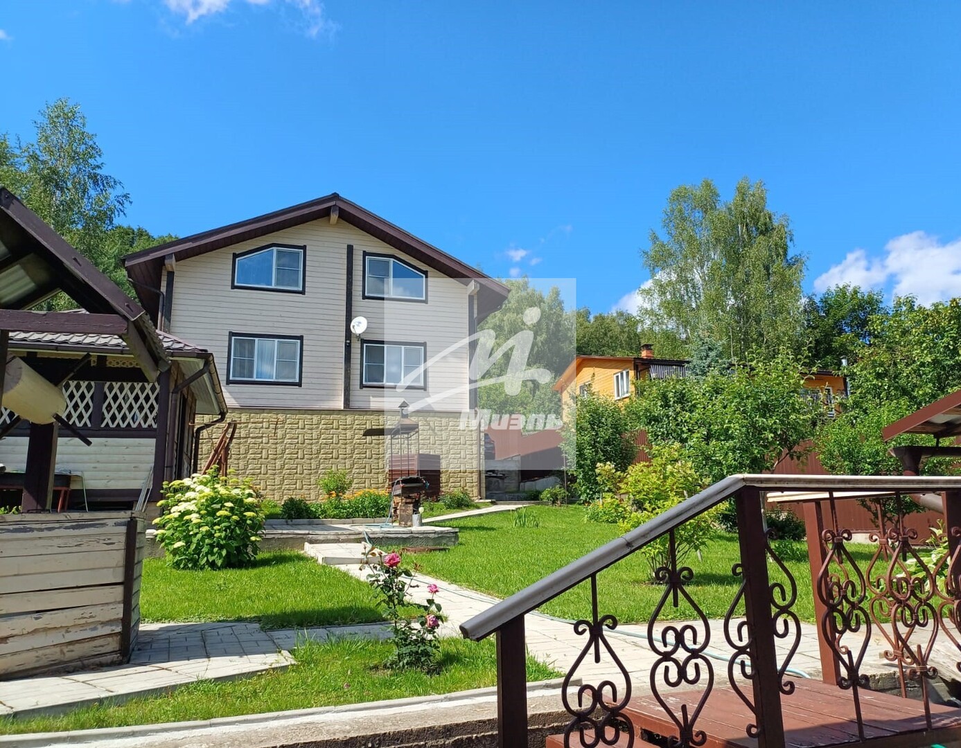 Продается дом из клееного бруса, расположенный на ухоженном, рельефном участке с панорамными видами.