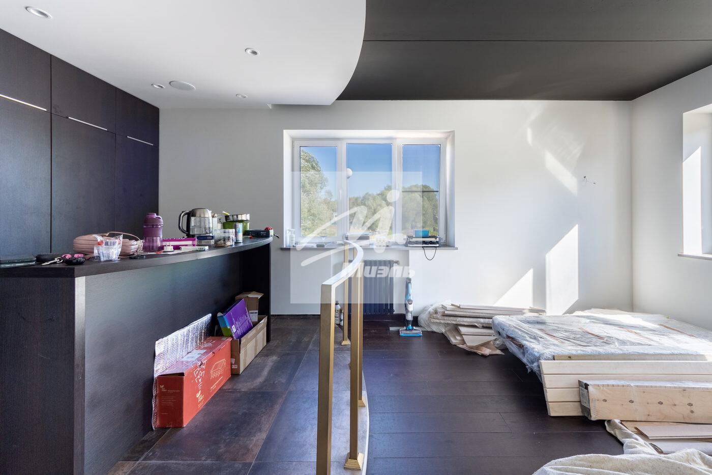 2 этаж: 2 спальные комнаты, большой санузел с установленной джакузи, огромным зеркалом и встроенным в него телевизором, также на втором этаже установлена звуковая система, которой можно управлять с телефона;