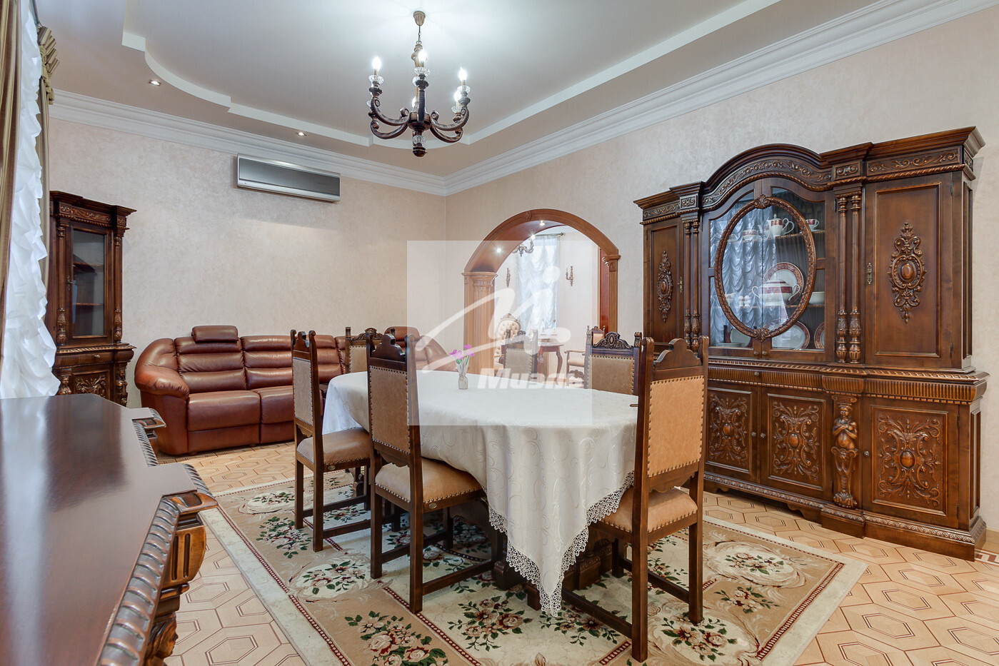 Есть все коммуникации: газ, электричество (80 КвТ), вода (скважина), канализация (септик), отопление. Качественная система очистки воды. Установлены система видеонаблюдения.