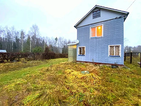 Дом щитовой на блочном фундаменте, полностью обшит вагонкой в два слоя. Первый этаж утеплен мин.ватой. Во всех комнатах большие окна.