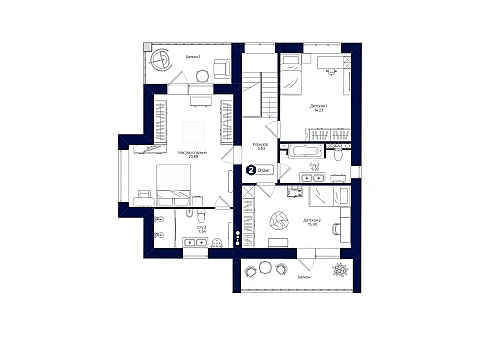 На втором этаже расположились 3 спальни, 2-е из которых с ванными комнатами, полы в сан.узлах с подогревом. Одна из спален с балконом. Весь этаж оснащен вентиляционной системой. На полах ламинат.