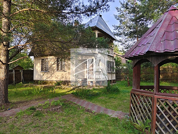 Продается дом на садовом земельном участке в СНТ «Алешинские сады» Ногинского р-на, Московской области. Коммуникации: электричество, летний водопровод, вода в дом заведена, над вторым этажом на чердаке расположен большой накопительный бак для воды, есть септик для слива канализации из туалета в виде колец, отопление печь. Площадь дома 80 м2; из бруса, на ленточном фундаменте (толщина бруса 15), год постройки 2001, двухэтажный, имеет три жилые комнаты, кухня, совмещенный санузел, кладовая. Площадь земельного участка 6,1 сотка, отмежеван, на нем растут сосны, помимо дома расположены строения: летняя беседка, хозблок для садового инвентаря, баня, уличный туалет. Площадь бани 16 м2, из бруса, состоит из двух помещений: парной и помывочной. Участок угловой, близко к лесу, в СНТ есть озеро для купания, магазин, недалеко магазин «Пятерочка» до ж/д станции Храпуново 5-7 минут на транспорте, до Москвы (Курский вокзал) 55 минут электричкой. Выезд на Носовихинское шоссе.. Один взрослый собственник, в собственности дом и земля. Ипотека подходит.