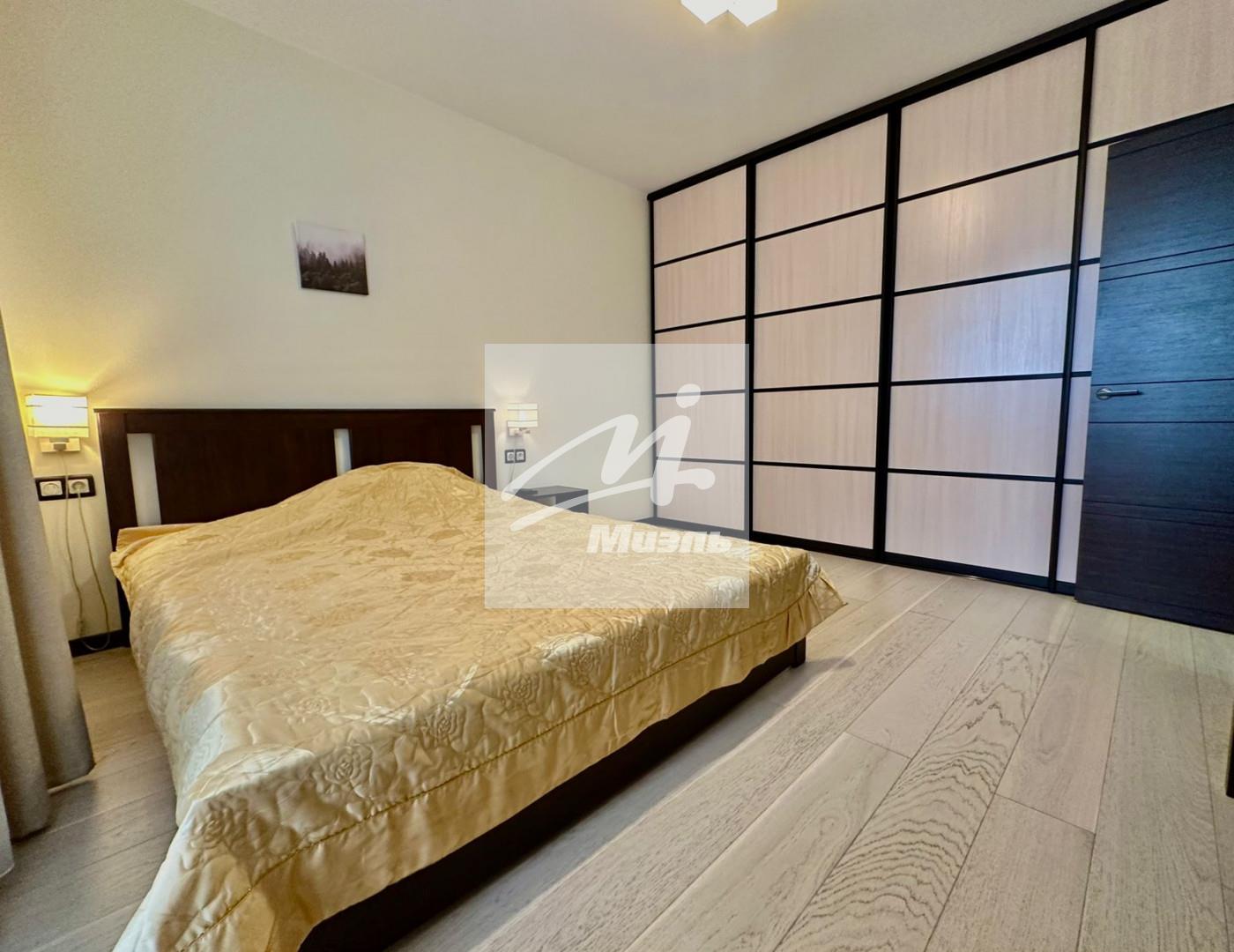 В спальне - вместительный, во всю стену шкаф-купе, двуспальная кровать с ортопедическим матрасом и подъемным механизмом, телевизор с приставкой. Выход на теплую лоджию, где расположен еще один шкаф.