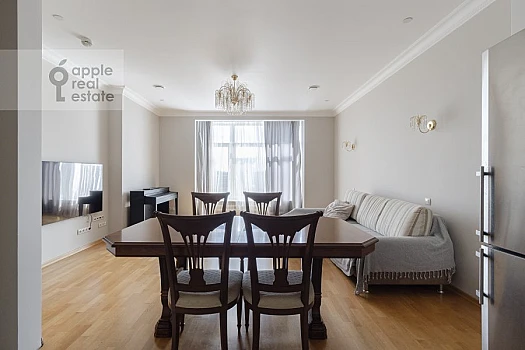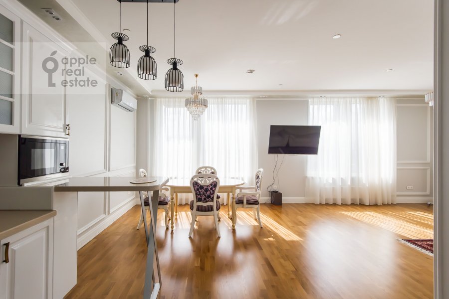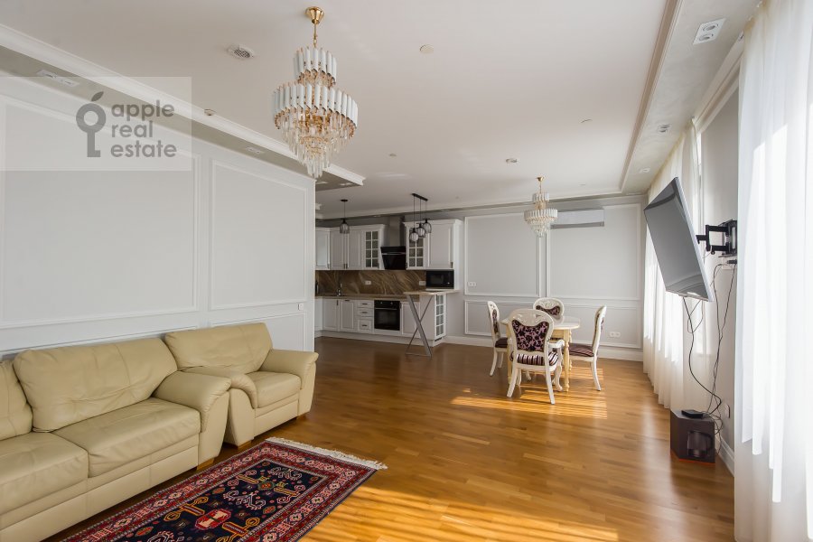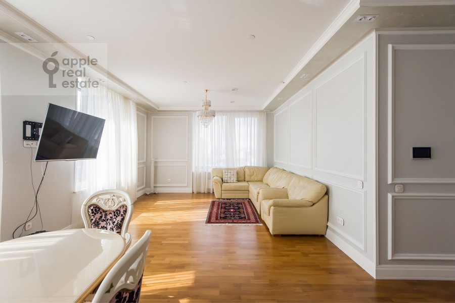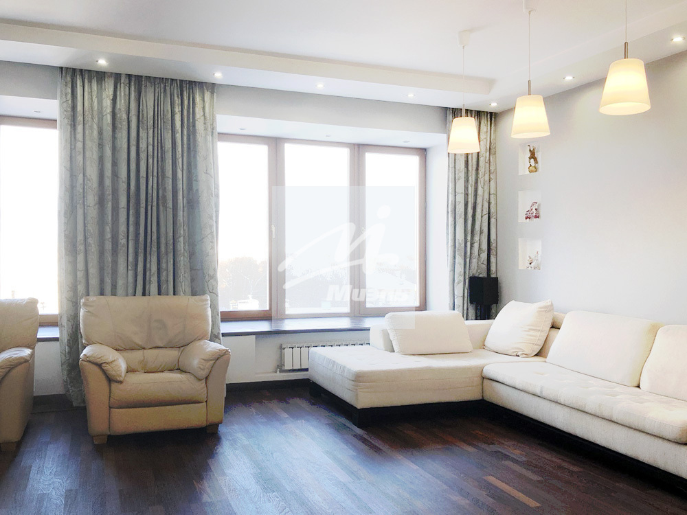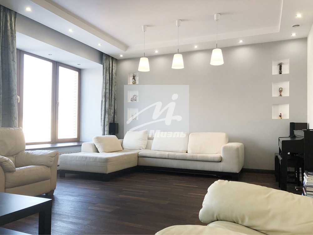 Просторная, светлая квартира в ЖК бизнес класса с огороженной территорией (охрана, шлагбаум) и консьержем. Одно машиноместо в подземном паркинге входит в стоимость. Большая гостиная и три спальни. Высокие потолки. На площадке 2 квартиры. Кладовая-постирочная с техникой Miele.Техническая комната. Мастер спальня со своим санузлом и душевой кабиной с гидромассажем. Второй санузел – с инфракрасной сауной. Дизайнерский ремонт. Смотрите фото. Длительный срок найма.