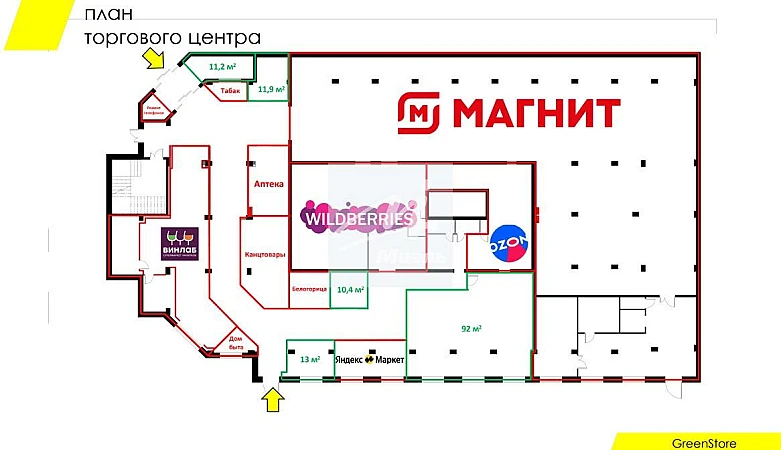 Сдается помещение 13 кв. м. в торговом центре Green Store. ТЦ находится в шаговой доступности трех спальных районов с населением 125 тыс. человек. В ТЦ находятся супермаркет, кафе, магазины, развлекательные места. Есть свободные помещения 10,4 11,2 11,9 13 92 кв. м. Без агентской комиссии! Быстрый показ!