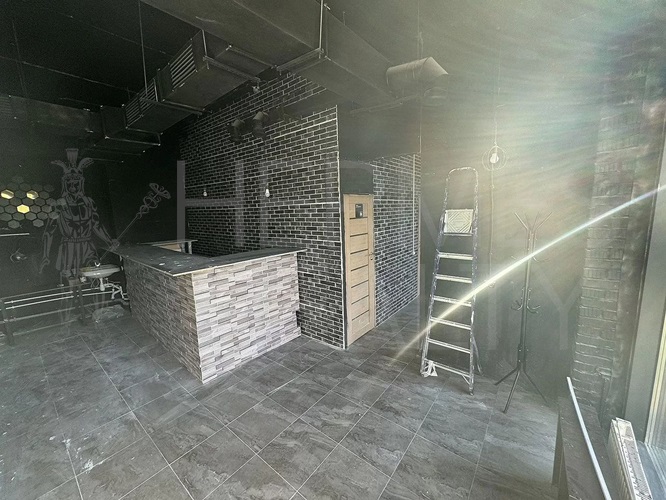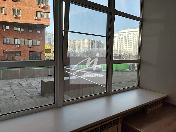 Большие витражные окна, возможно установить рекламу.