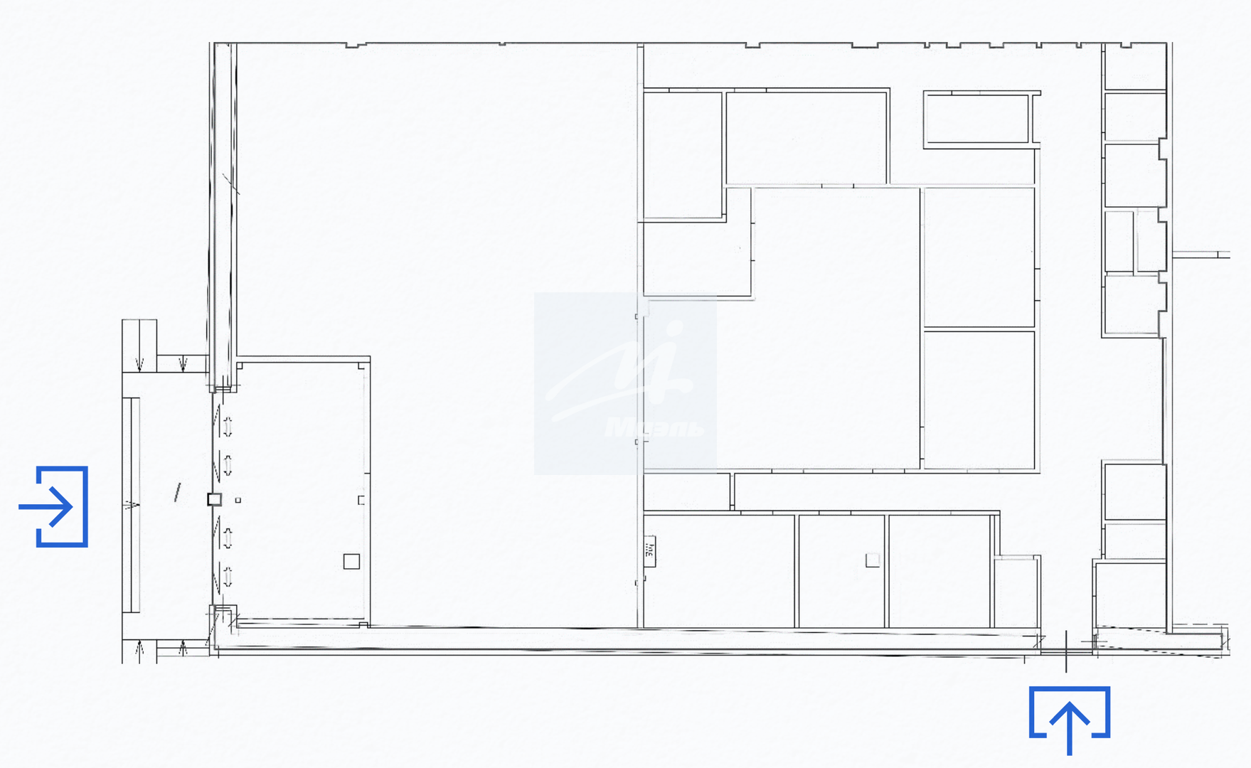- Помещение расположено на 1-м этаже одноэтажного ОСЗ (отдельно стоящего здания).