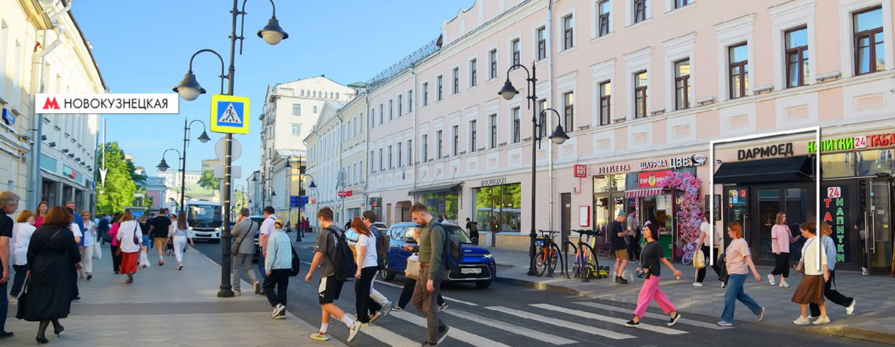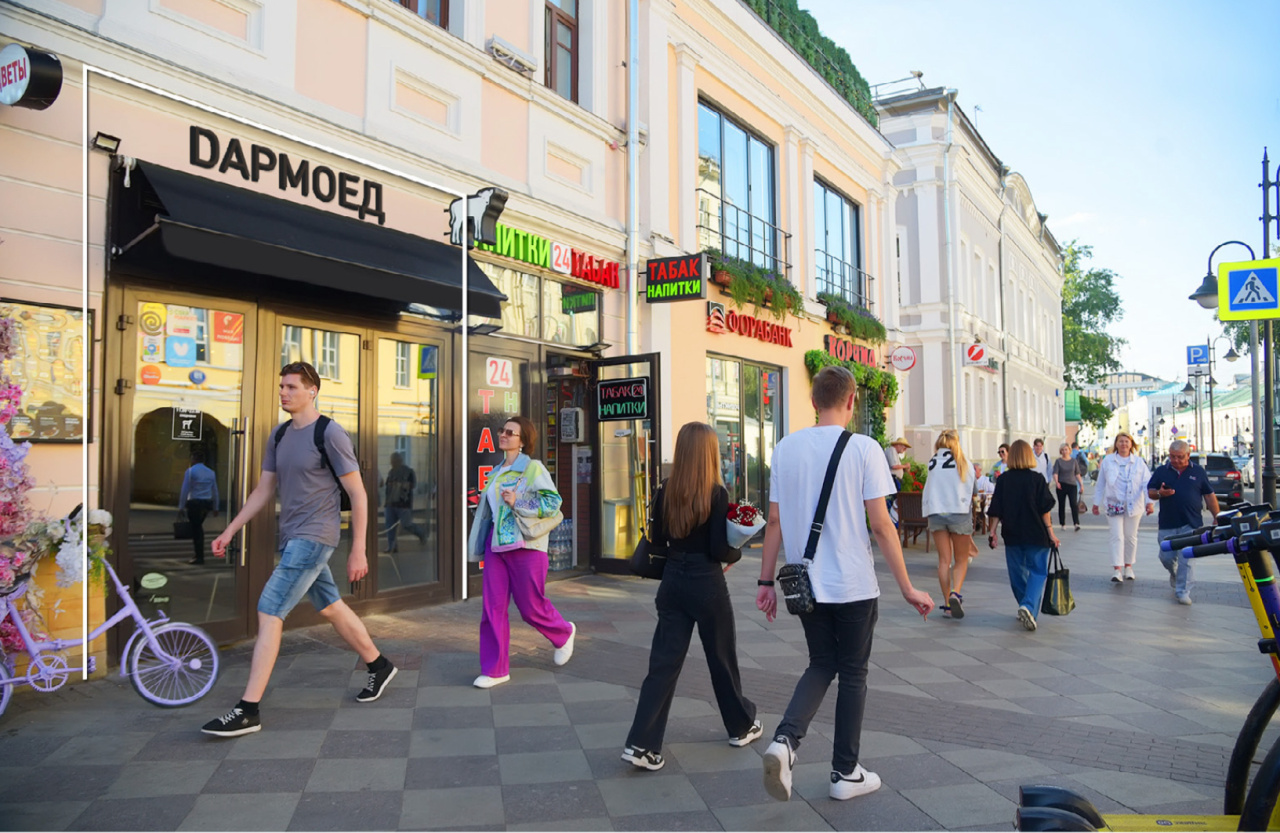 - Место с интенсивным пешеходным и автомобильным трафиком вдоль помещения.