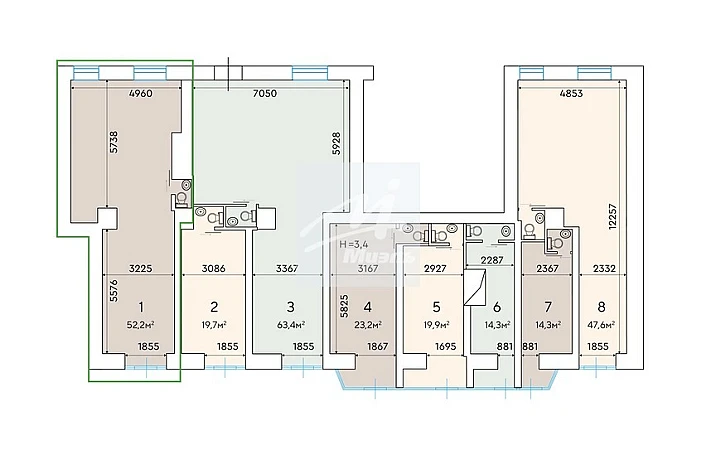 - Высота потолков - 3,4 м.