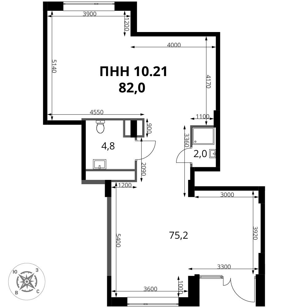 - Высота потолков - 3 м.