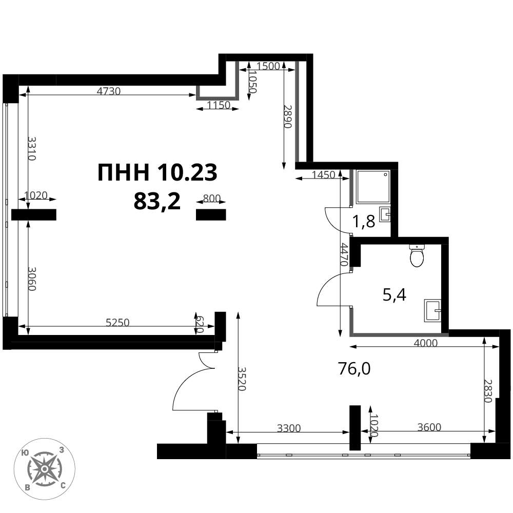 - Общая площадь - 96,6 м2.