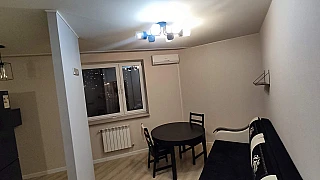 В квартире выполнен косметический ремонт, есть вся необходимая мебель и техника. В гостиной: телевизор, удобный угловой диван и 2 кресла. В спальне: удобный диван, платяной шкаф, комод и встроенный шкаф. На кухне: кухонный гарнитур, электроплита с духовым шкафом, стиральная машина, холодильник и обеденная зона. Санузел разделен, чисто и аккуратно. Окна выходят на улицу.