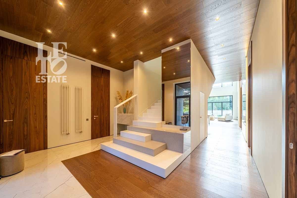 Ощущение пространства в доме обеспечивают большие панорамные окна и высокие потолки в комнатах (от 3,5 до 7,2 метров), а также великолепные виды на все стороны света.