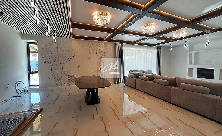 Продается новый, стильный, современный, готовый к проживанию дом в охраняемом коттеджном поселке. Дом построен полностью из кирпича, утеплен и оштукатурен. Общая толщина стен - 50 см. Фундамент - ленточный, ж/б, армированный, сверху- монолитная ж/б плита 40 см толщиной. Кровля - металлочерепица, с базальтовым утеплителем 200мм толщиной.