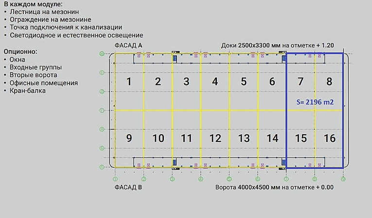 2 шт. доковых ворот (стандартные доки) на отметке + 1.20