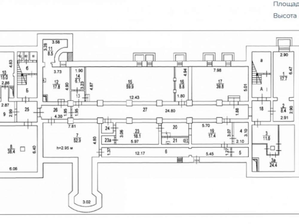 . Первый этаж - 30 помещений кабинетного типа с потолком 3,7м. Возможно создать места для хранения на антресольных полках. Помещения можно объединить в блоки, при необходимости снести ненесущие перегородки. Есть 4 входа с улицы. На первом этаже пристройки имеется большое помещение 300 м2 с витринными окнами и отдельным входом с улицы, с двумя лестницами в подвальную часть (помещение можно разделить на блоки ненесущими перегородками), с доступом через гараж и лифтом в подвал.