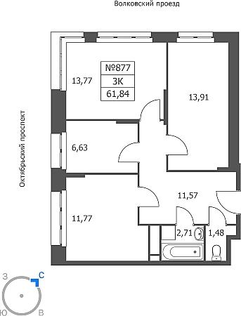Купить 3к квартиру 61 м² в ЖК Волковская 67
