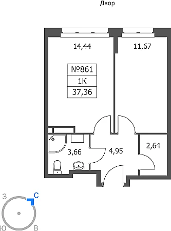 Купить 1к квартиру 37 м² в ЖК Волковская 67