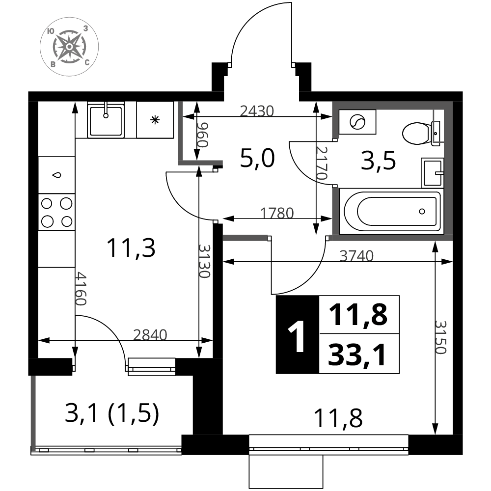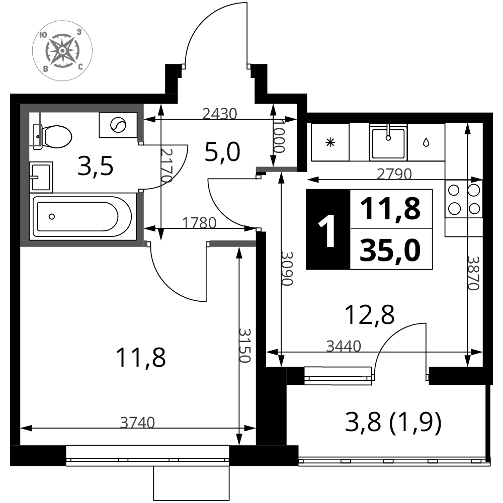 Купить 9к квартиру 29 м² в ЖК Новотомилино