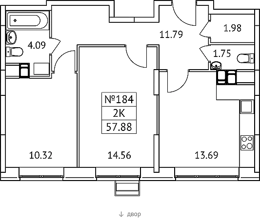 Купить 2к квартиру 57 м² в ЖК Новотомилино
