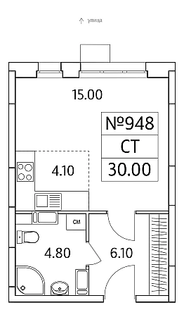 Купить 9к квартиру 30 м² в ЖК Облака 2.0