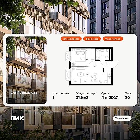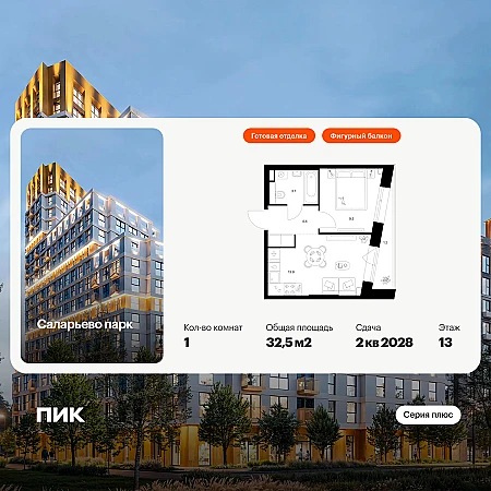 Купить 1к квартиру 35 м² в ЖК Новотомилино