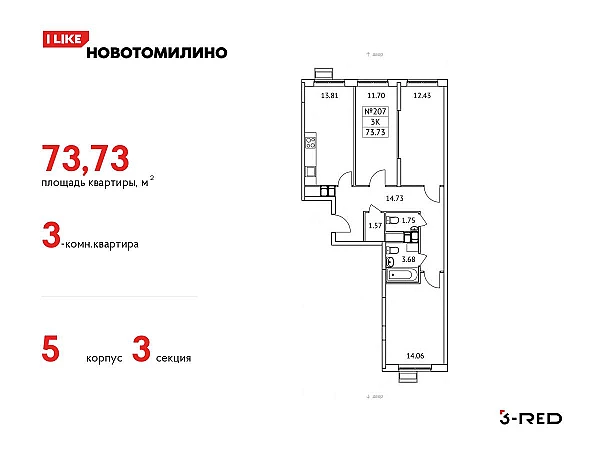 Продается 3-комнатная квартира общей площадью 73,73 кв.м. на 14 этаже 17-этажного дома. Квартира расположена в стильном жилом комплексе «Новотомилино» от застройщика 3-RED. Удобная и практичная планировка дарит максимально широкие возможности для создания интерьера и позволит рационально использовать каждый сантиметр.