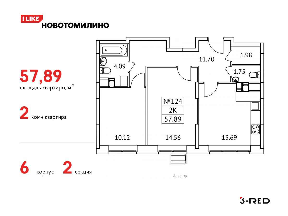 Продается 2-комнатная квартира общей площадью 57,89 кв.м. на 4 этаже 17-этажного дома. Квартира расположена в стильном жилом комплексе «Новотомилино» от застройщика 3-RED. Удобная и практичная планировка дарит максимально широкие возможности для создания интерьера и позволит рационально использовать каждый сантиметр.