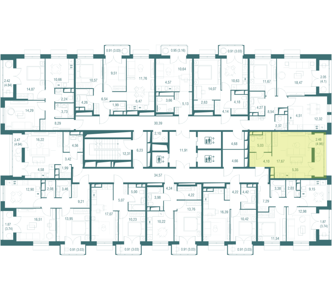 34 м²