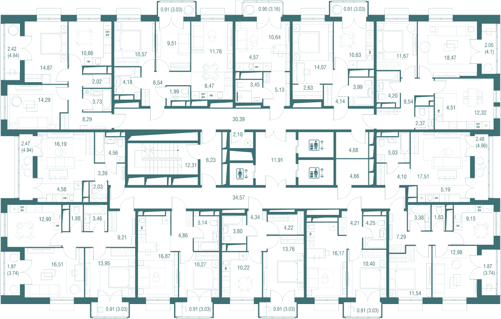 34 м²