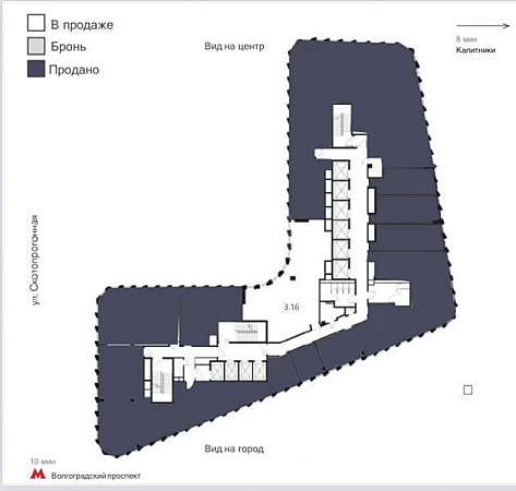 Лот №814211 Предлагаем офис 118.6 кв.м. на 3м этаже в (ЮВАО) рядом со ст. Волгоградский проспект или МЦД 2 Калитники в БЦ класса А+ (сдача 2027 год).