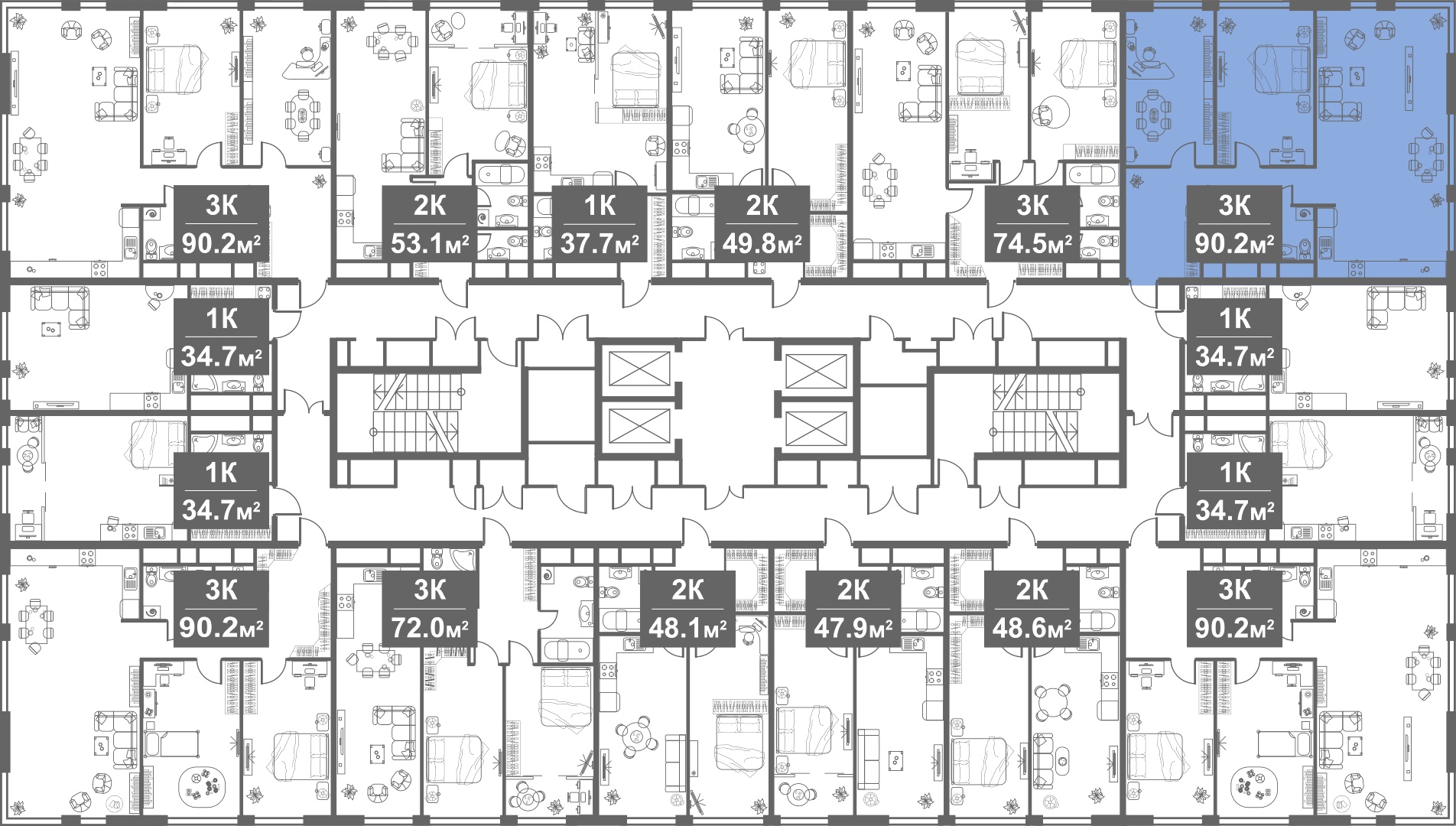3 - комнатные апартаменты в West Tower это идеальные апартаменты для индивидуальности. Простор открытой планировки, в сочетании с инфраструктурой комплекса и отличной экологией вокруг дают отличную основу для покорения вершин. Здесь только самое необходимое. Эти апартаменты больше других подобных подходят для зонирования. Можно легко отделить хоум офис от кухни, а пространство для приема гостей от зоны отдыха.