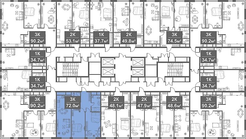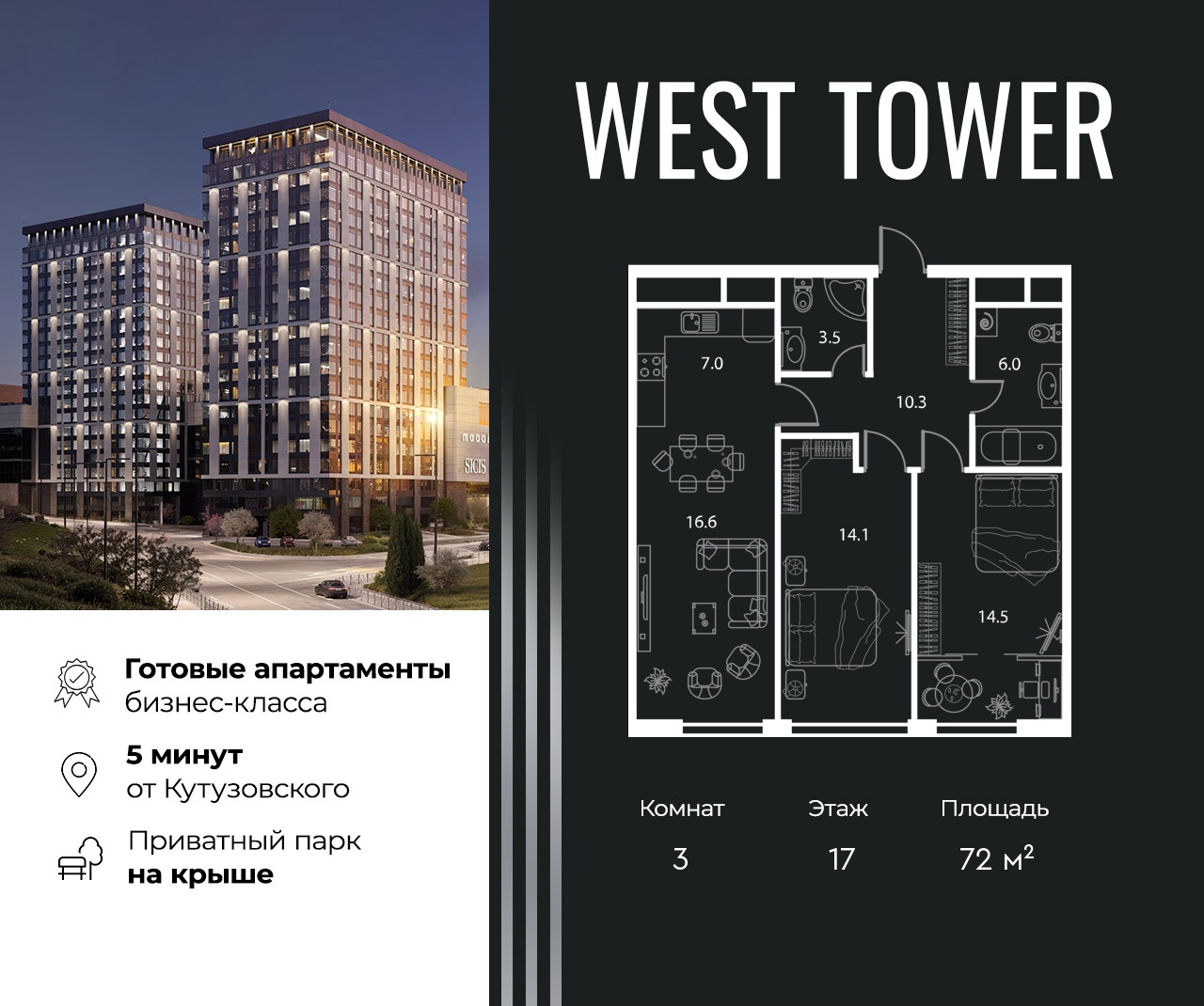 Купить 3к квартиру 72 м² в апарт-комплексе West Tower
