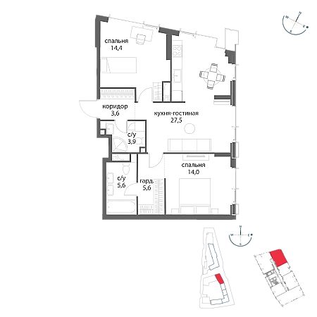 Купить 3к квартиру 94 м² в ЖК Stellar City (Стеллар Сити)