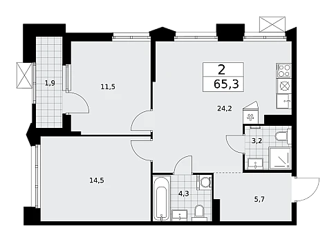 Площадь квартиры составляет: 62 кв. м, потолки: 3.1 м