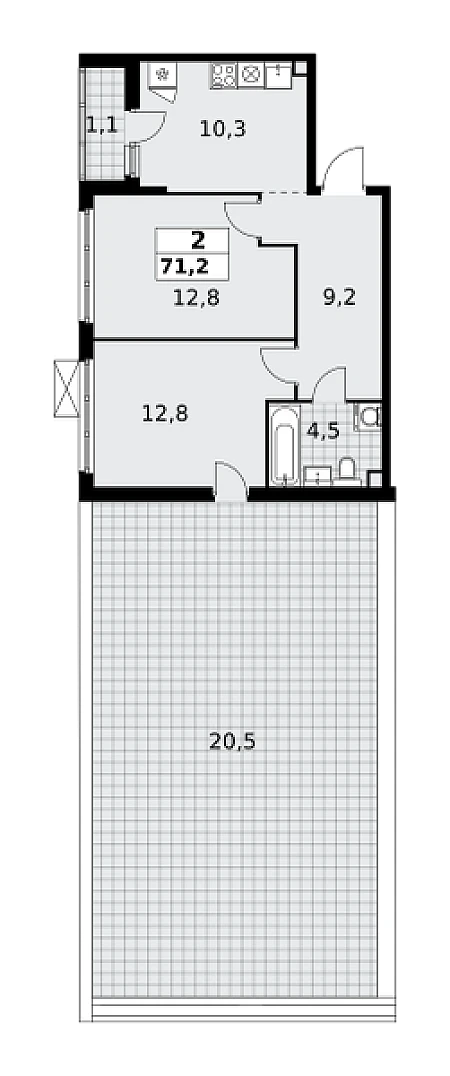 Площадь квартиры составляет: 80.3 кв. м, потолки: 3.1 м