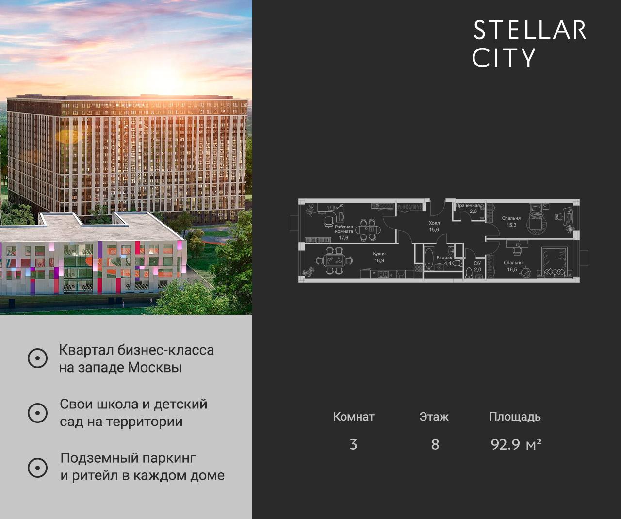 Купить 3к квартиру 92 м² в ЖК Stellar City (Стеллар Сити)