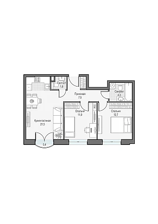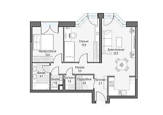 Квартира находится на 13 этаже, 4 корпуса жилого квартала Stellar City — микрогорода будущего на орбите Москвы.