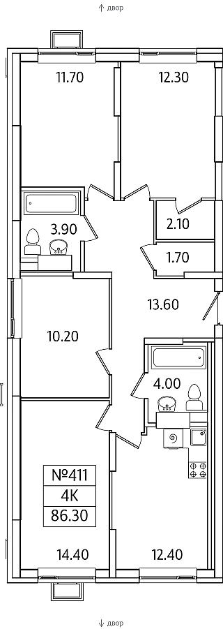 Площадь квартиры составляет: 72.6 кв. м, потолки: 3.1 м