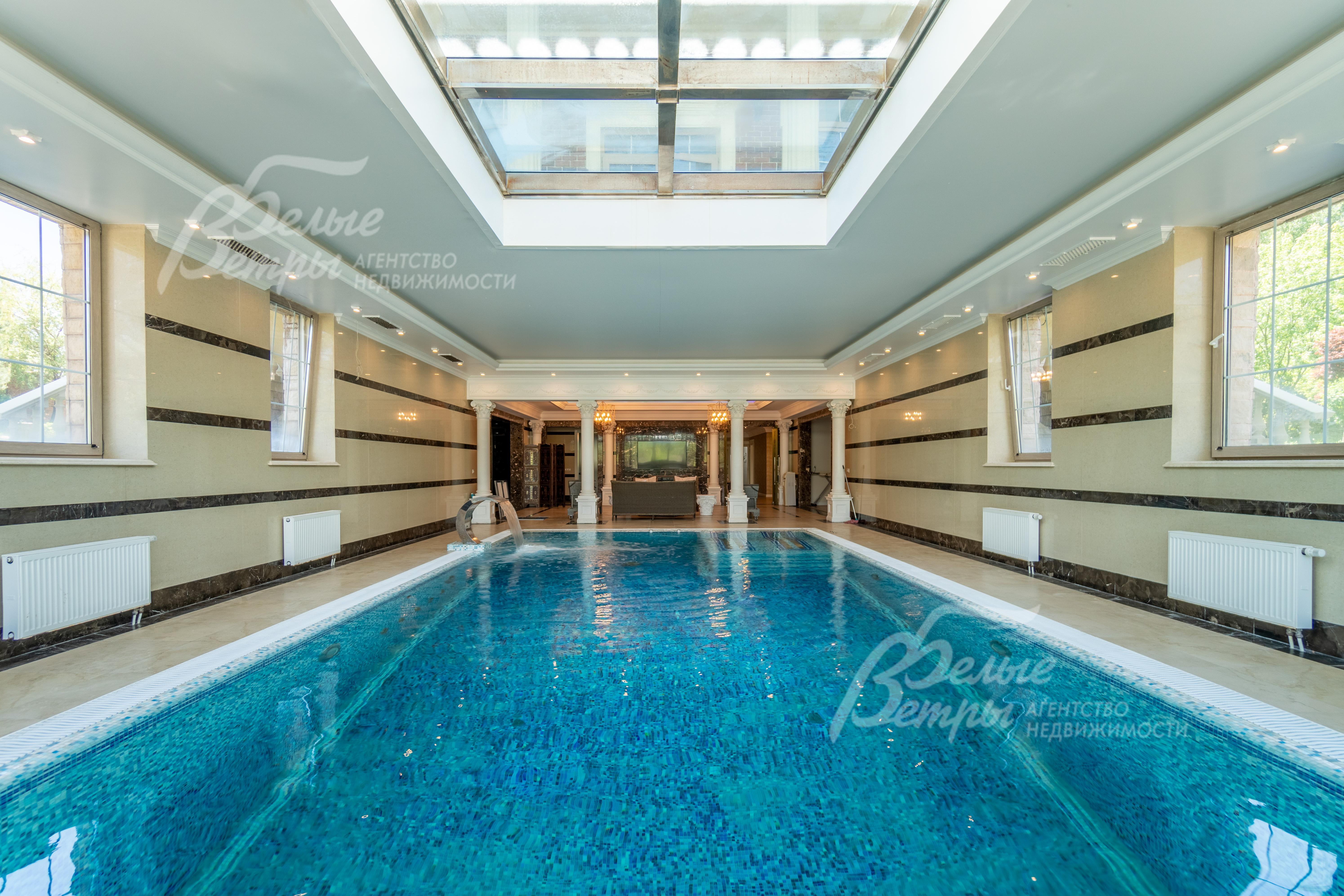 Инженерное обеспечение: установлены 2 котла Buderus по 210 кВт, бойлеры косвенного нагрева Buderus 500 л в основном доме, Buderus 200 л в гараже с квартирой и многоступенчатая система очистки и смягчения воды. Приточно-вытяжная система вентиляции с кондиционерами Fujitsu, смонтированная под потолком в каждой комнате. Установлена пожарная сигнализация, проводка под охранную сигнализацию разведена по дому. По верху забора вокруг участка заложена проводка системы видеонаблюдения..