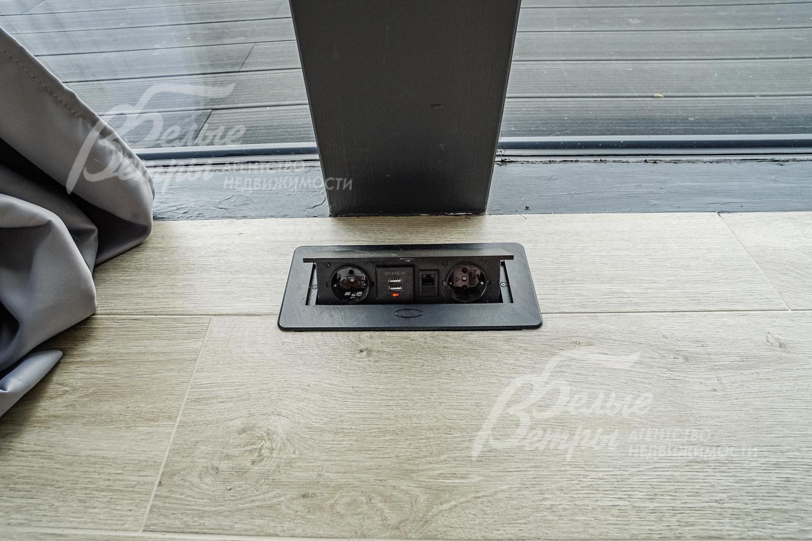Мебель, оборудование: Дом полностью меблирован. Установлен кухонный гарнитур с островом и со всей встроенной техникой (варочная панель, духовка, микроволновая печь, холодильник), столовая группа, в гостиной мягкая мебель, кровати в спальнях. Санузлы полностью оборудованы сантехникой, смесителями, полотенцесушителями. Установлены кондиционеры..