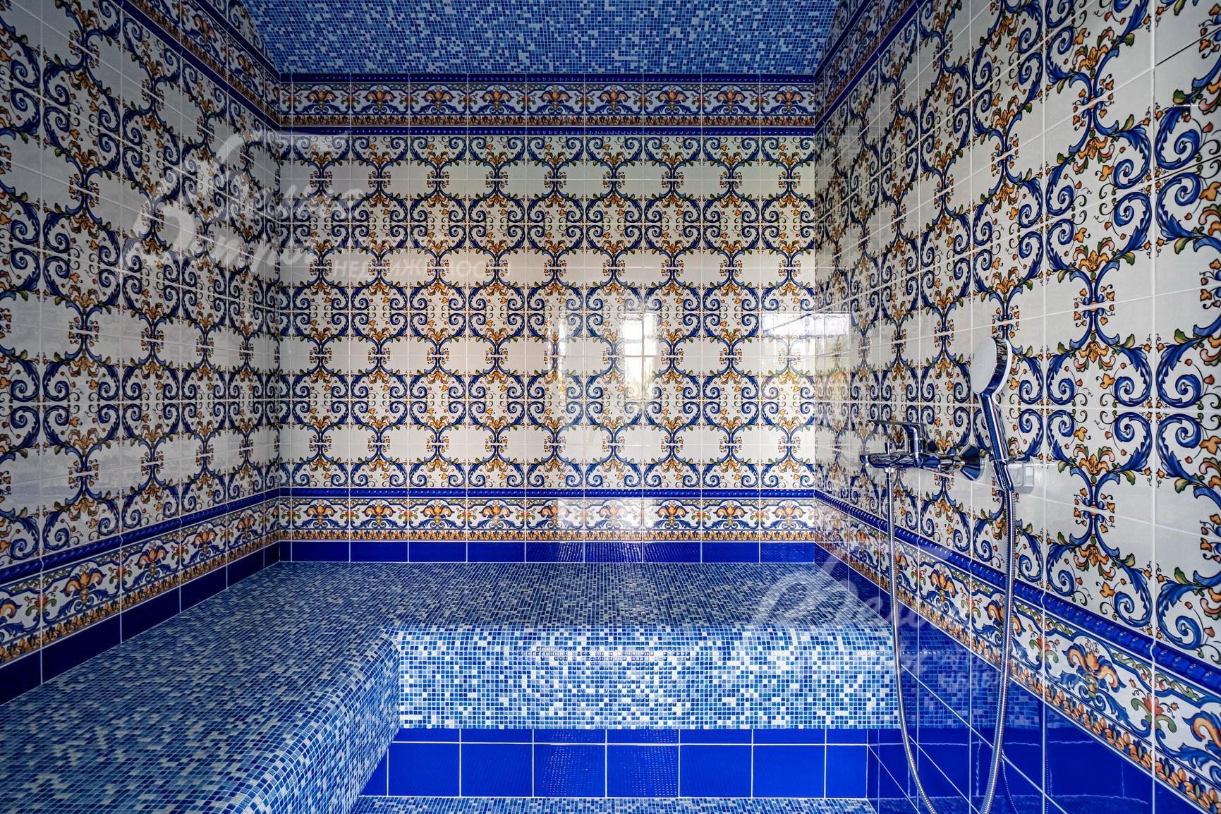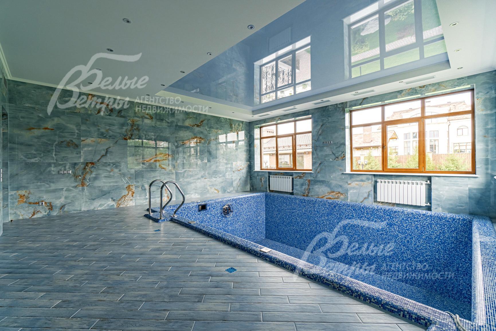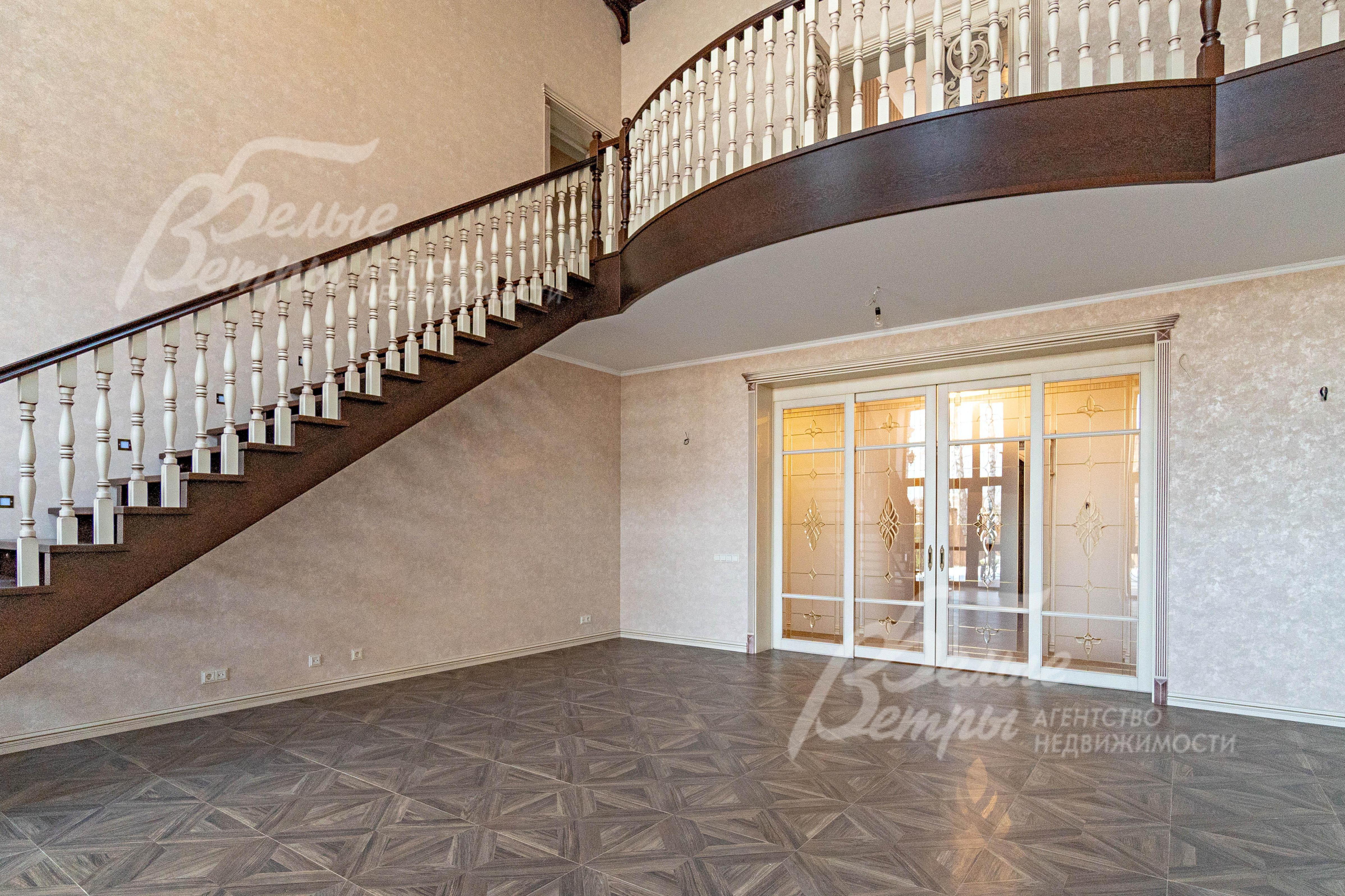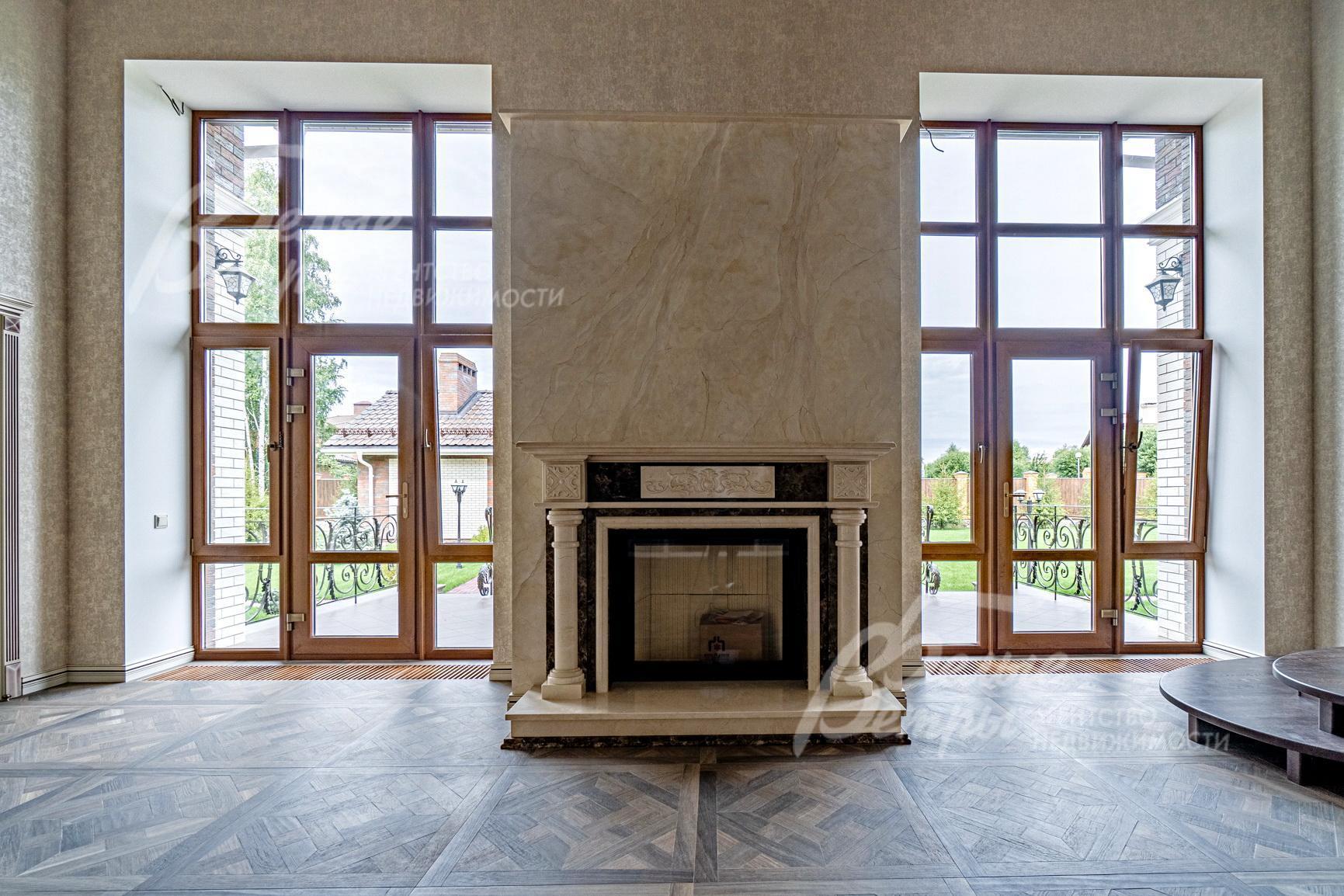 Внутренняя отделка: Современная элитная отделка с дизайнерскими элементами. На стенах дорогие английские обои и декоративная венецианская штукатурка, камин облицован мрамором. На полу паркет, плитка керамогранит с подогревом. Лестница деревянная (дуб), ширина 110 cм, ступени с подсветкой 30х18 см. Потолки подвесные многоуровневые. Качественная, дорогая сантехника (марки VilleroyBoch, Migliore), джакузи почти в каждом санузле. Двери - массив дуба (Италия), с резными порталами и проемами. Высота дверей 215 см, в гостиной 285 см. Подоконники – мрамор (Италия)..