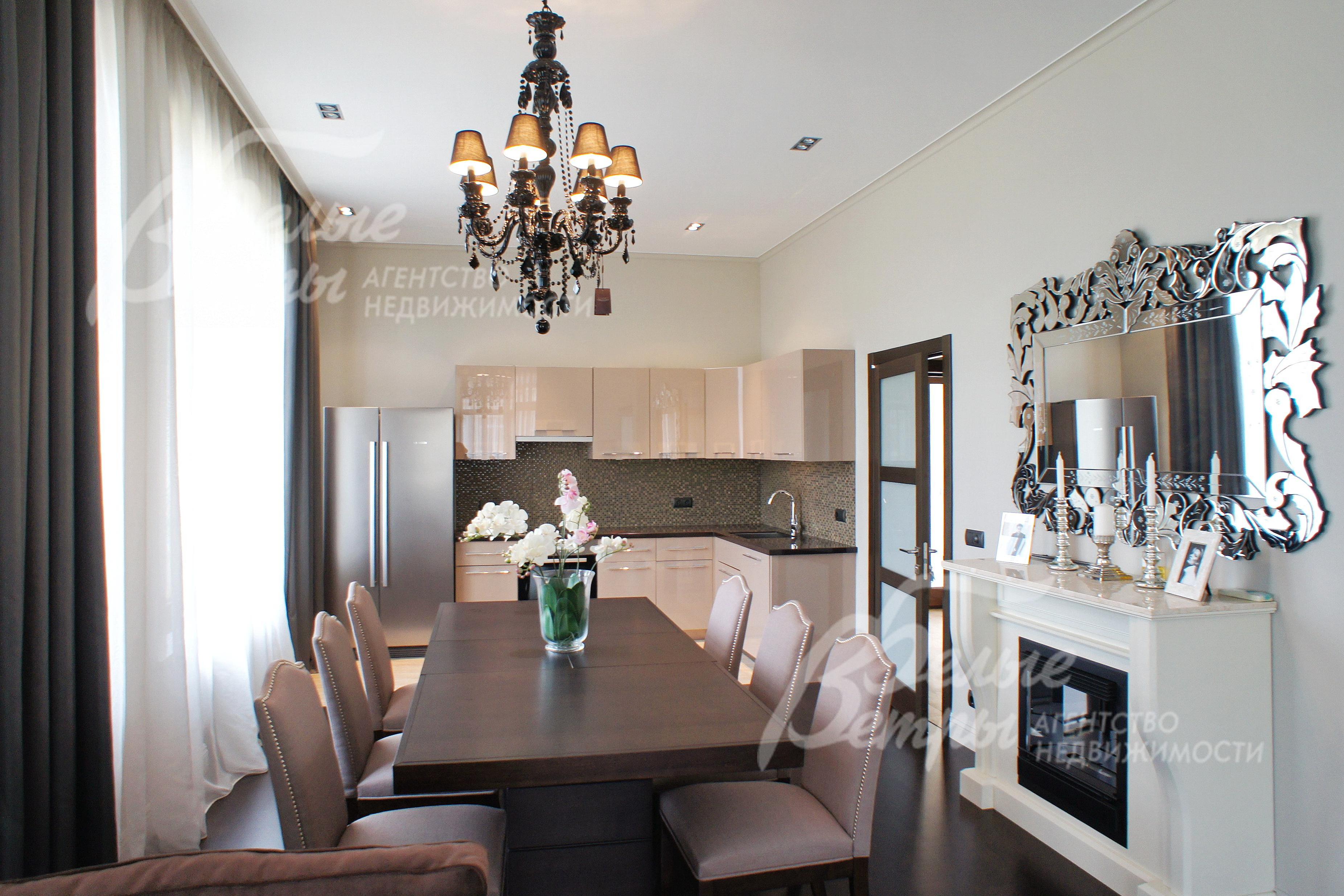 Мебель, оборудование: дом полностью меблирован, есть вся необходимая мебель: в обеденной зоне стильная столовая группа, в гостиной уютный мягкий комплект (диван и два кресла), журнальный столик, тумба под ТВ. В спальнях большие двуспальные кровати, тумбы, комоды, туалетные столики. Гардеробные оборудованы системами для хранения вещей. В кабинете оборудовано рабочее место. Кухонный гарнитур, оборудован всей необходимой мебелью фирмы Bosch: большой двухкамерный холодильник, электрическая варочная панель, духовой шкаф, вытяжка, посудомоечная машина. Стирально-сушильная машина Bosch на 7 кг, телевизоры LG. Карнизы, качественные стильные шторы. В доме множество предметов освещения: люстры, стильные настольные светильники..